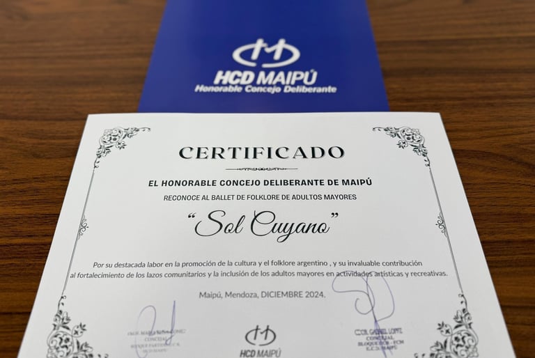 El Honorable Concejo Deliberante de Maipú aprobó una resolución para reconocer al Ballet de Folklore de Adultos Mayores “Sol Cuyano”, por su valioso aporte a la cultura del departamento y su incansable labor como espacio de encuentro, aprendizaje y expresión artística para las personas mayores.